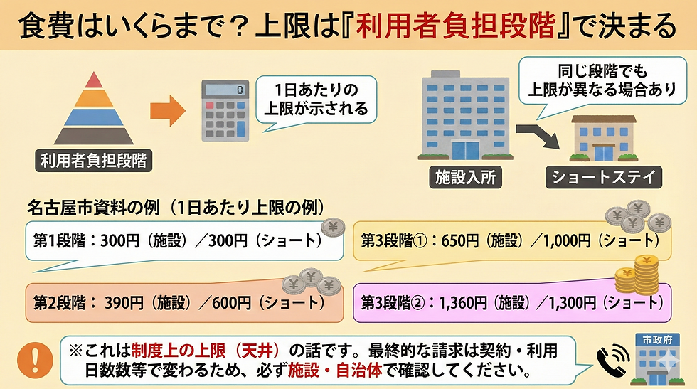 さらに同じ段階でも、施設入所とショートステイで上限が異なる場合があります。(例:名古屋市)