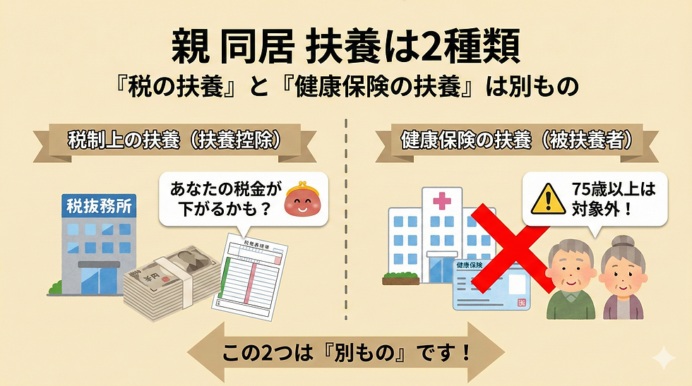 親 同居 扶養は2種類|「税の扶養」と「健康保険の扶養」は別もの