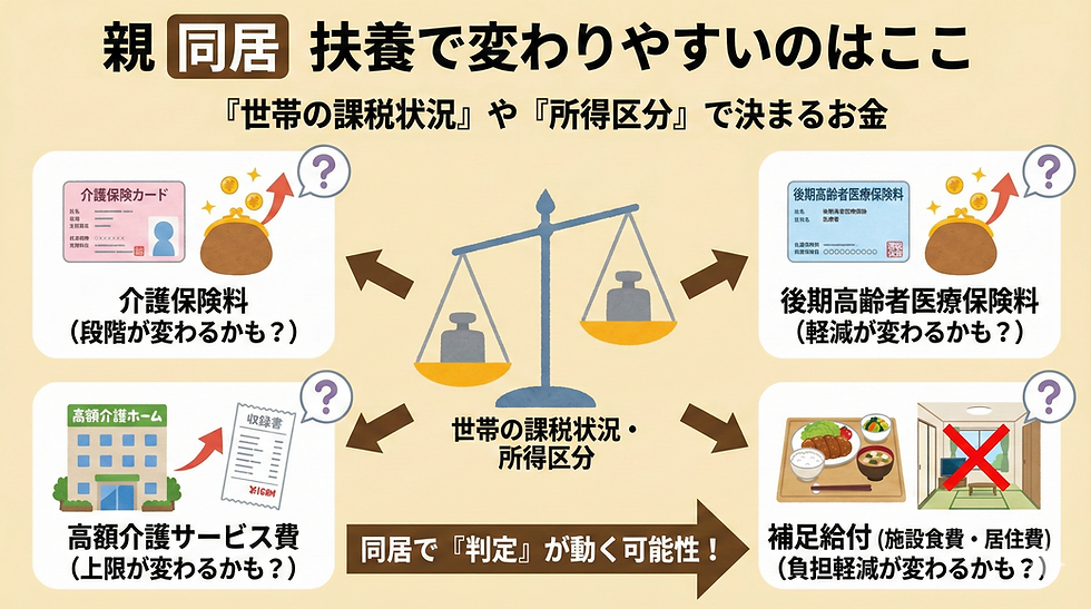 親 同居 扶養は、税金だけを見て決めると“思わぬ落とし穴”が出やすいです。