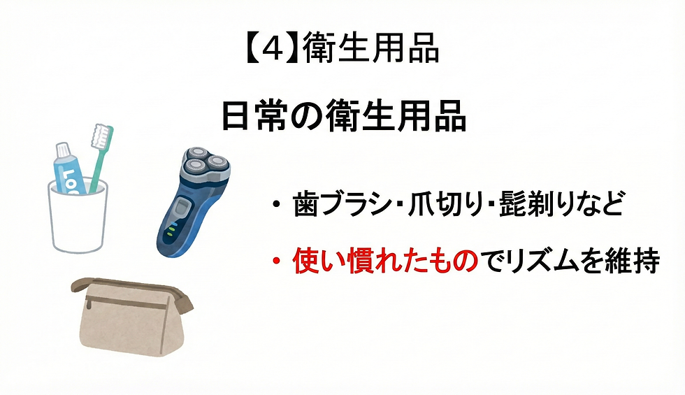 「全部を一度に完璧に揃えよう」と思うと大変なので、①必須の持ち物 → ②便利グッズ → ③サービス確認という順番で考えると迷いが少なくなります。