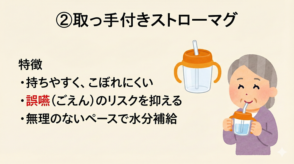 ・むせやすい方でも、自分のペースで水分補給しやすくなります