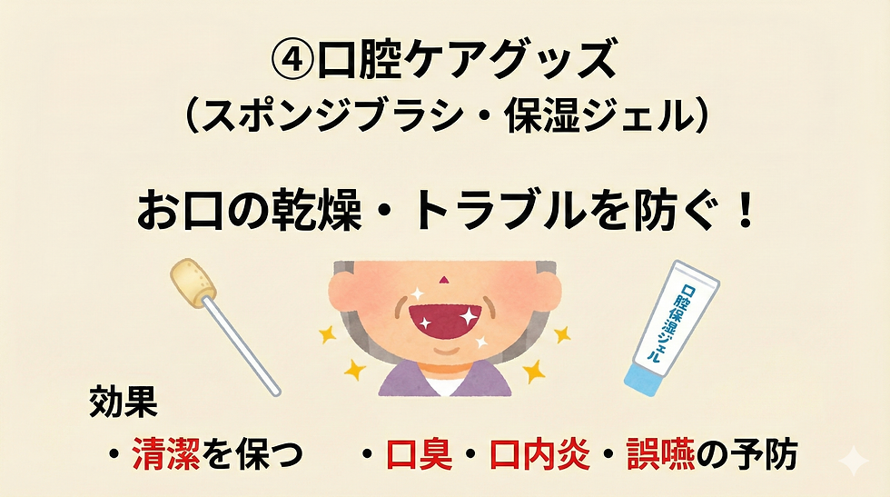 4. 口腔ケアグッズ(スポンジブラシ・保湿ジェルなど)