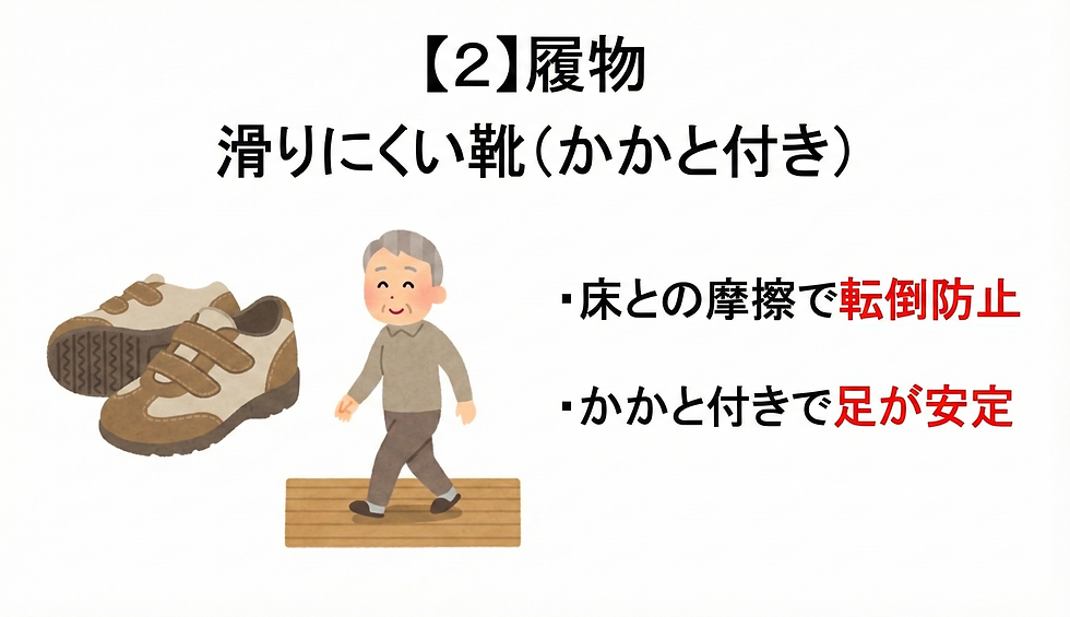 2. 滑りにくい室内履き(かかと付き)