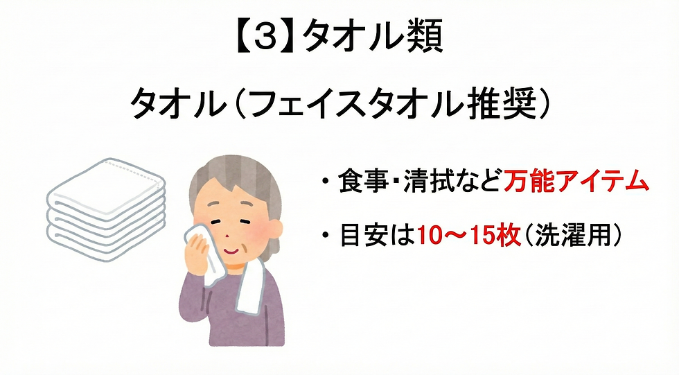3. タオル類(フェイスタオル多め)