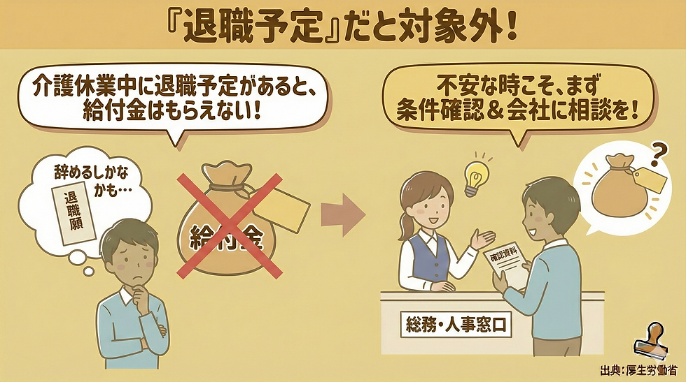 Q&Aでは、介護休業中に退職する予定がある場合、介護休業給付の対象にならない旨が示されています。