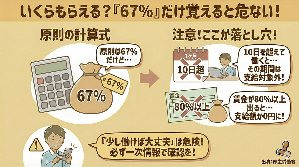 いくらもらえる?「67%」だけ覚えると危ない(就労10日・賃金80%)