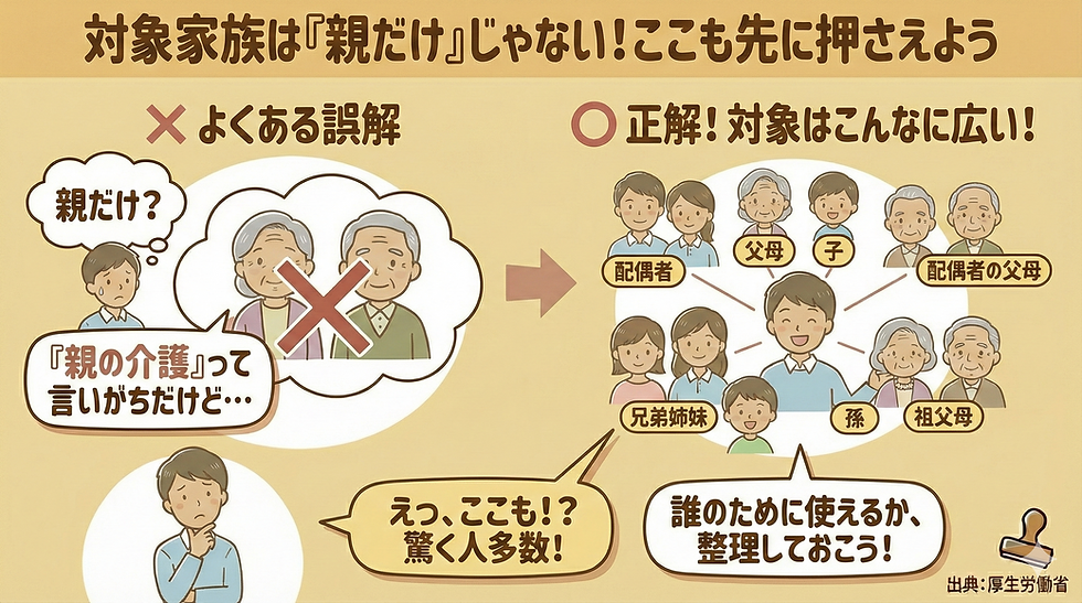 「親の介護」って言いがちなんですが、一次情報では対象家族がきちんと決まっています。