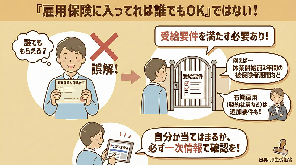 「休みつつ少し働けば大丈夫かな?」って思う気持ち、すごく分かります。でも、条件によっては支給対象外になるので、ここは必ず一次情報で確認してください。(厚生労働省)