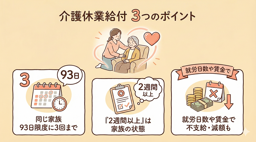 でも、介護休業給付の条件を知っていると、「まず何を確認するか」が見えやすくなります。