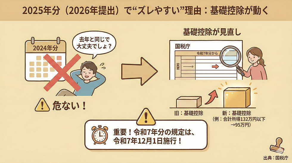 3)2025年分(2026年提出)で“ズレやすい”理由:基礎控除が動く