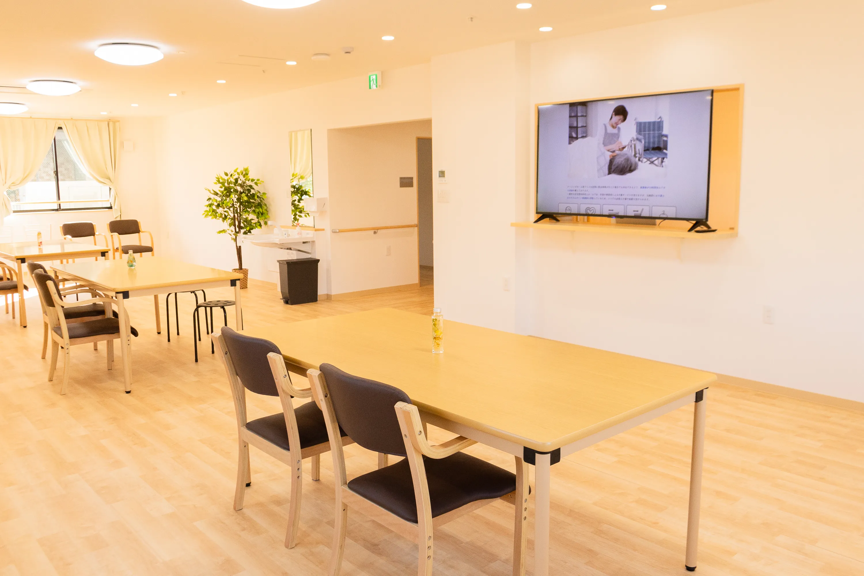 大型テレビでの映像鑑賞やテーブルを囲んで美味しい食事をお楽しみ頂けます。