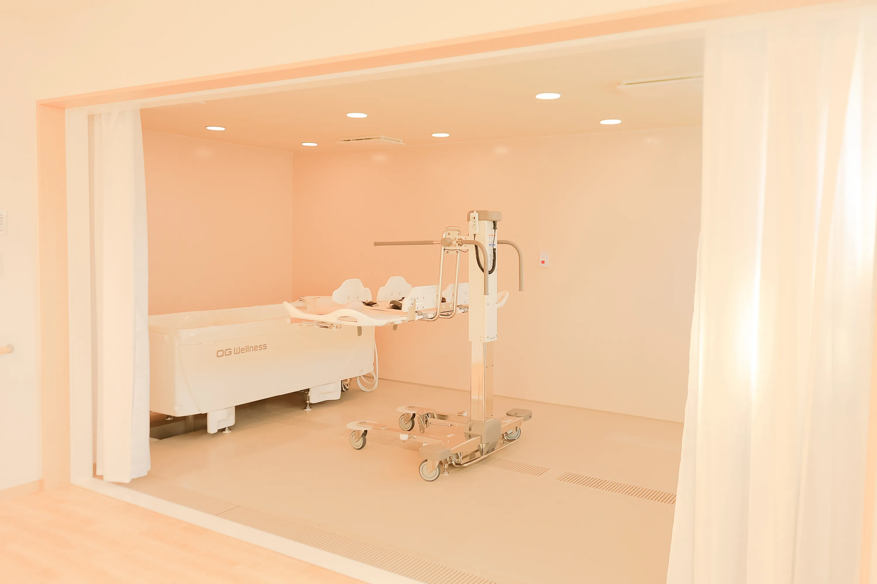 機械浴を設置しているので、ご自身でご入浴が難しい方もベテランスタッフの介助のもと、ゆっくりお湯に浸かることができます。